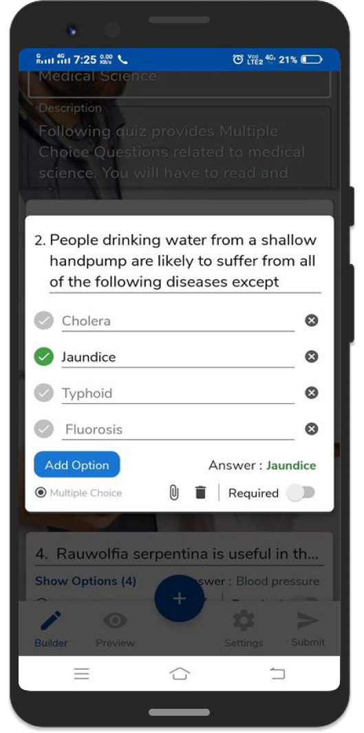 Native quiz builder allows you to build your quizzes without internet and save it in offline quizzes. When you access the internet you can submit your quiz with just one click to be saved as a quiz.