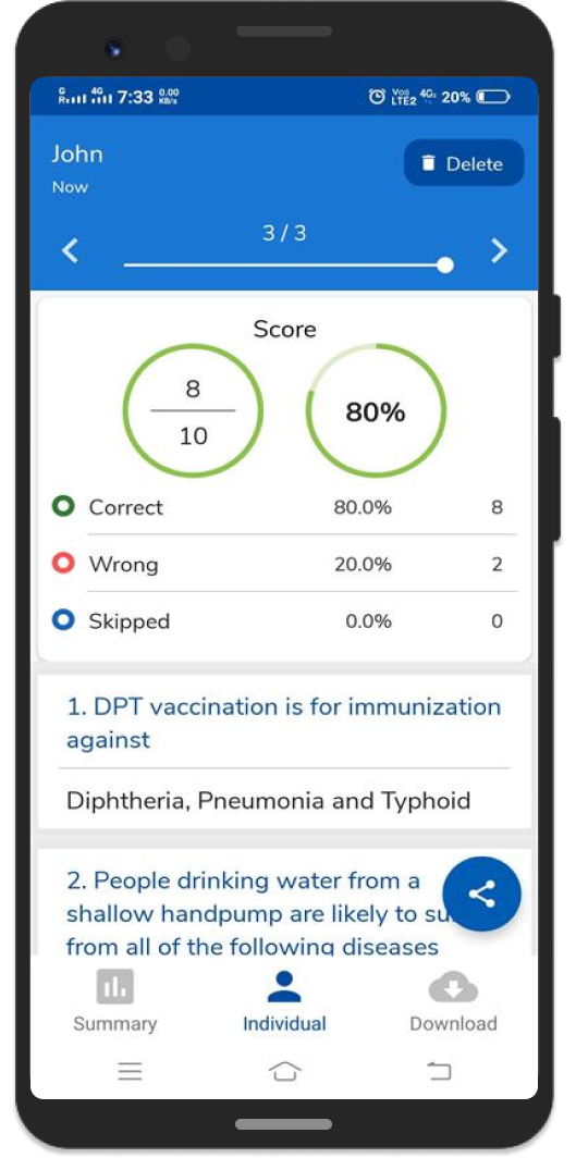 Summary of your respondent’s results will be shown on a real time basis. Get error free corrected results instantly for your quizzes.